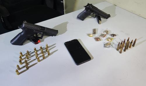 A este grupo se le incautaron dos armas de fuego, municiones para fusil, un celular y varias bolsas con posible marihuana. "se les decomisa nueve municiones de uso exclusivo para las fuerzas de seguridad." indicó la PNC.