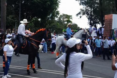 Caballos de pura sangre, cientos de personas que llegaron en buses, disfraces y varios políticos, participaron en una caravana del partido de Gobierno Vamos, pese a que aún no arranca la campaña electoral.