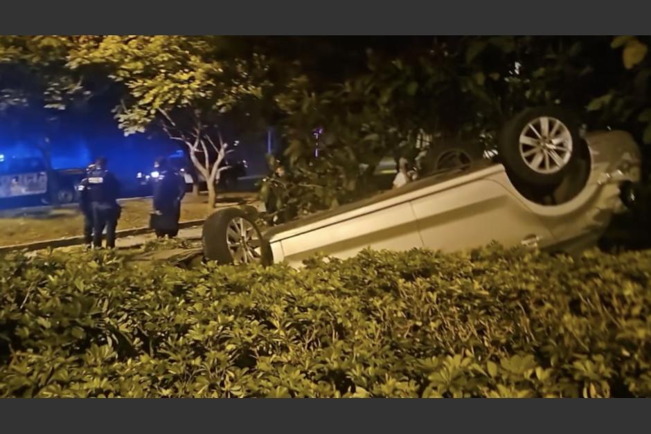 La madrugada de este 9 de diciembre se registró un accidente de tránsito que dejó un vehículo volcado en la curva de la Tribuna Militar, que conduce de zona 15 hacia la zona 5 capitalinas.