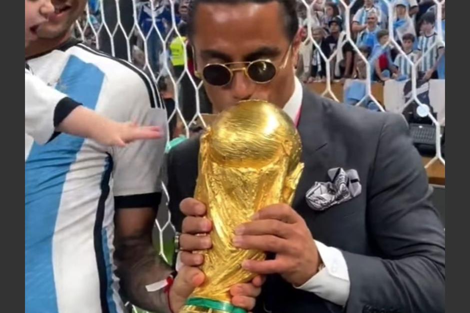 El reconocido chef Salt Bae causó polémica en la final de Qatar tras irrumpir en el estadio para celebrar con los argentinos y hasta tocar y "besar" la Copa Mundial.