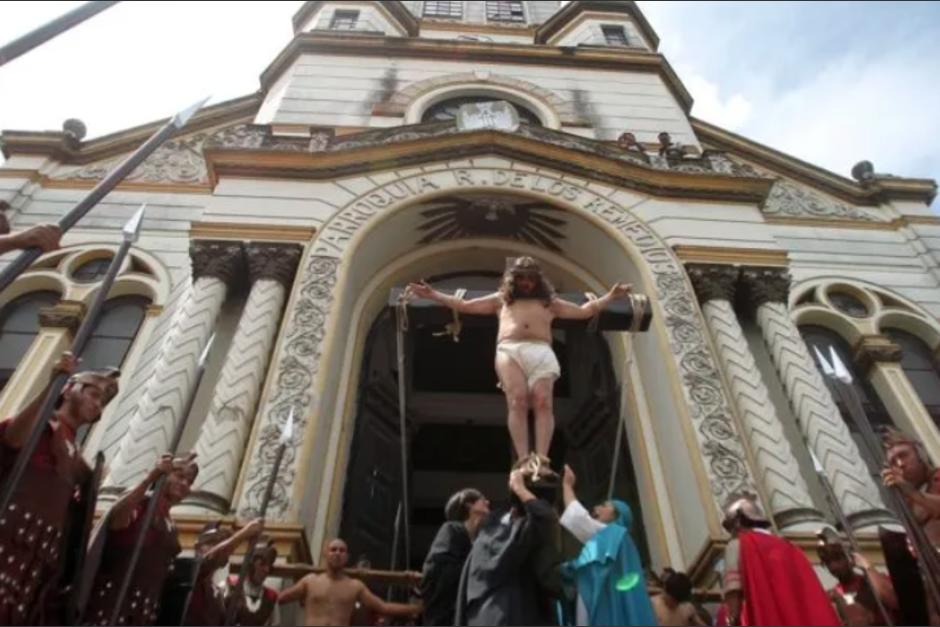 Un hombre cayó de 7 metros de altura mientras personificaba a Jesús en la cruz.