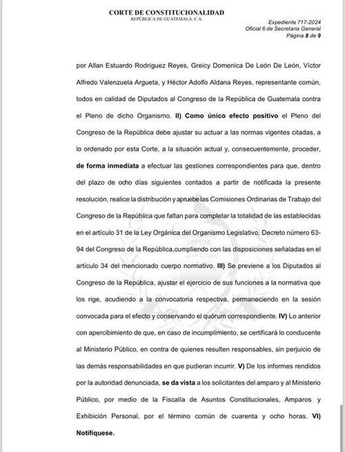 Los magistrados de la Corte de Constitucionalidad otorgaron un amparo presentado por diputados de la bancada Vamos, con lo cual lograron que se distribuyeran cuatro comisiones de trabajo que habían quedado guardadas desde el pasado 30 de enero.