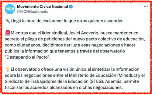 "La opacidad con la que se ha negociado este pacto ha facilitado, durante años, la imposición de intereses particulares que han deteriorado profundamente el sistema educativo nacional", dice también el texto, y añade que "la falta de acceso a esta información permite la inclusión de privilegios desproporcionados" para el STEG, entre otros aspectos.