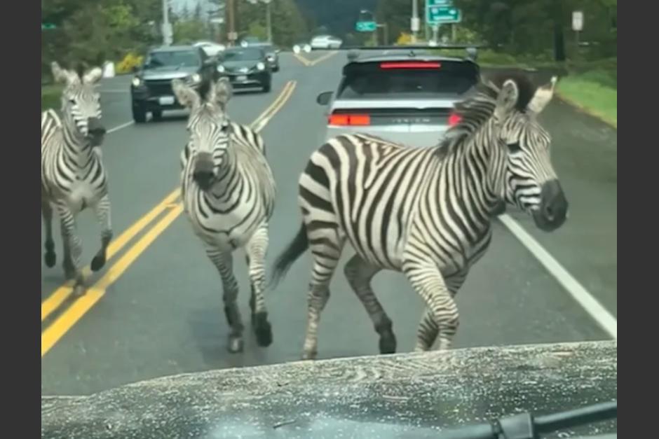 Cebras se escapan y ocasionan caos en una carretera en Estados Unidos.
