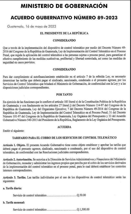 Según el Acuerdo Gubernativo 89-2023, las cuotas son individuales y deberán ser pagadas en moneda local, por transferencia, dos días antes de que inicie el plazo de la medida. Este es el detalle: