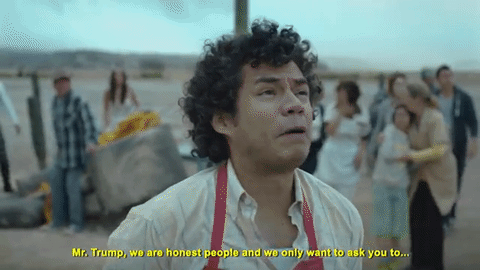 El cirujano "González" cae sin entender cómo, con un órgano de Trump en su mano, cerca de una reina de belleza también latina, en medio del desierto más allá de un alto muro con cerca de alambre.