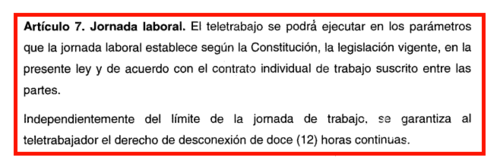 Si se aprobara la ley, se le garantizaría al personal que se encuentre en teletrabajo el derecho de estar desconectado por un período de 12 horas continuas, independientemente de la jornada que se le asigne.