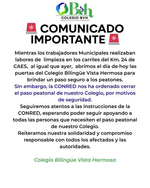 Tras el derrumbe ocurrido la madruga del lunes en el kilómetro 24 de carretera a El Salvador, el centro educativo Bilingüe Vista Hermosa habilitó el paso peatonal para brindar un cruce seguro.