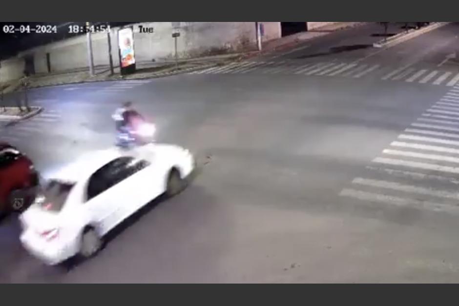 Una cámara de seguridad captó el momento en que ocurrió un accidente de tránsito en el que estuvieron involucrados un automóvil y una motocicleta.