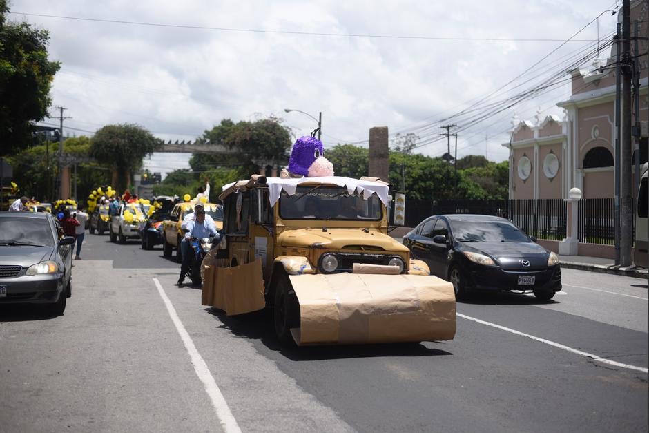 Los carros fueron adornados con globos de colores, imágenes de San Cristóbal y otros materiales, según se evidenció en imágenes captadas por Soy502.