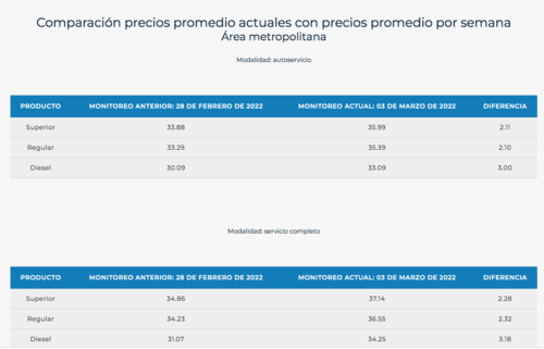 Esto representa una diferencia de entre dos y tres quetzales, en relación al monitoreo anterior al 28 de febrero, según se observa en el informe del MEM.