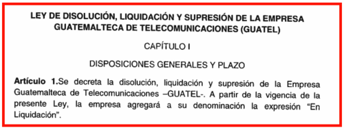 Registrado con el número 6179, el proyecto plantea todo un mecanismo para la disolución, liquidación y supresión de Guatel en un lapso de seis meses, una vez se establezca una comisión que estaría a cargo del proceso.