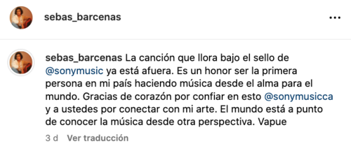 "Hoy les voy a contar cómo pasé de hacer este video a firmar con Sony Music. Yo soy Sebas Bárcenas, llevo toda mi vida haciendo música, fue aproximadamente hace un año que decidí empezar a hacer Tik Tok... después de varios meses de estar haciendo miles y miles de tik toks una mañana me levanté bastante triste, decidí escribir una canción y en menos de una hora ya la tenía escrita la 'Canción que llora'", relató.