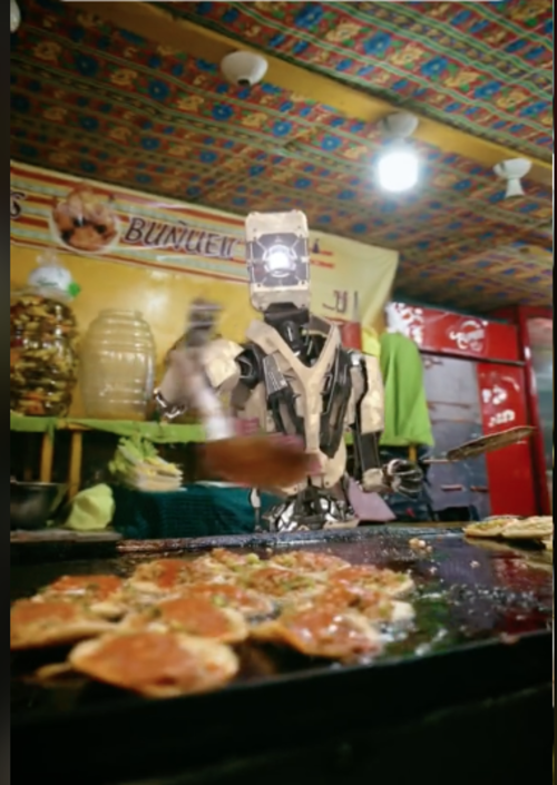En el video se aprecia a simpáticos androides de diferentes formas recorrer los puestos de comida, subirse a los juegos, disfrutar del tradicional futio y de los colores de las luces de neón tradicionales de esta celebración.