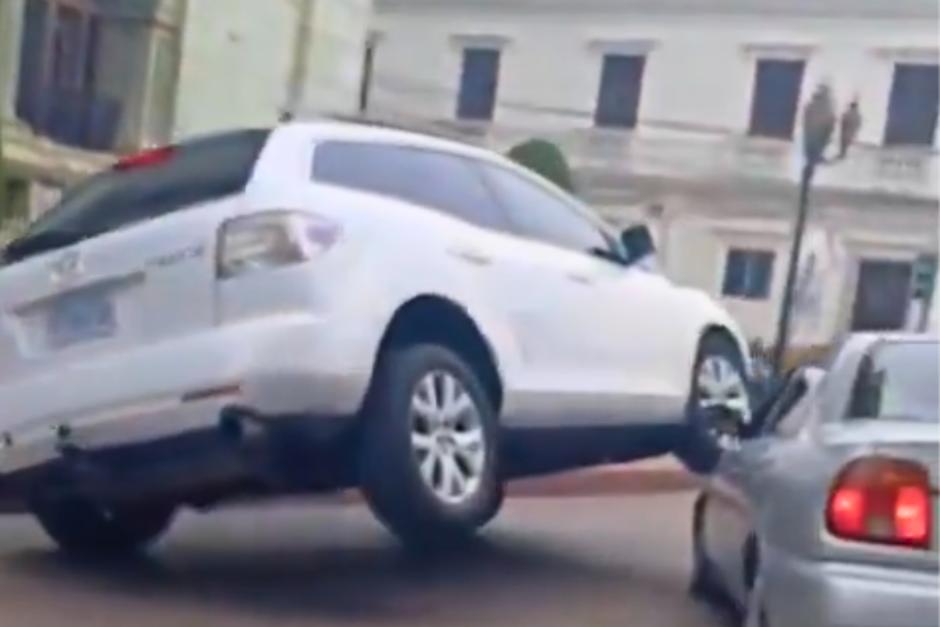 Un peculiar accidente de tránsito ocurrió frente al Palacio Nacional de la Cultura, en la zona 1 de la Ciudad de Guatemala, según quedó evidenciado en un video que circula en redes sociales.