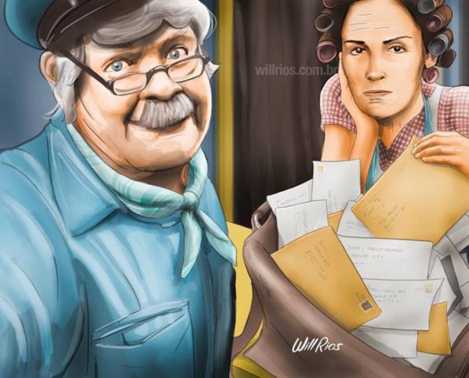 Jaimito el Cartero con Doña Florinda, en la típica escena donde le decía que buscara su correspondencia por ella misma. (Foto: Will Ríos/Facebook)
