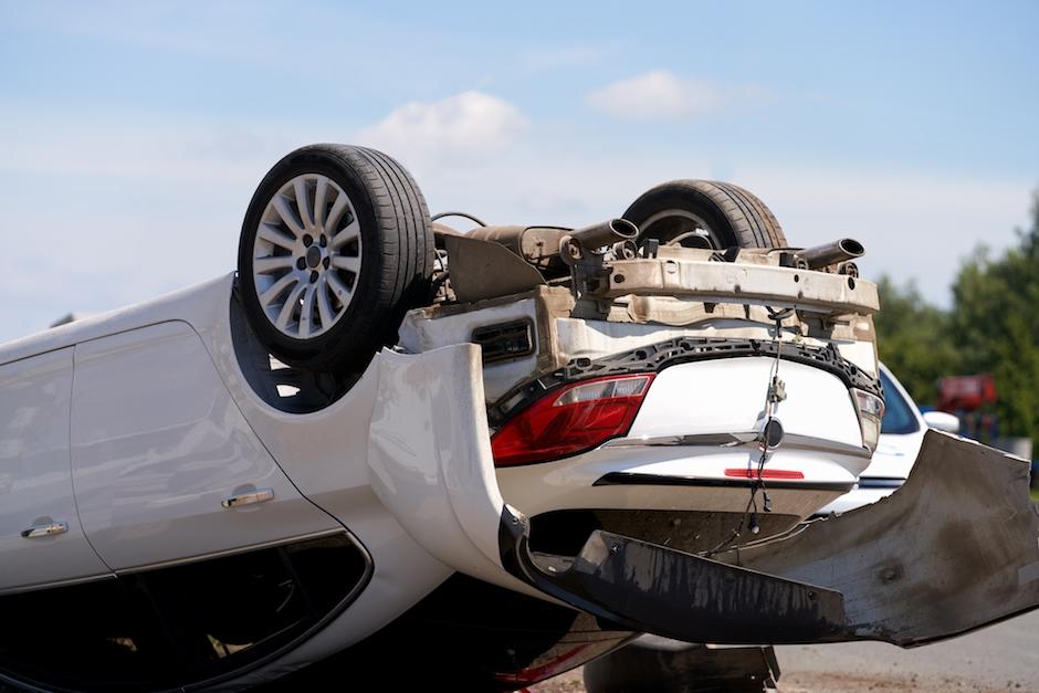Un vehículo terminó volcado, luego de un accidente de tránsito ocurrido en el kilómetro 5.8 de la ruta que conduce al Atlántico, la madrugada de este domingo 8 de enero.
