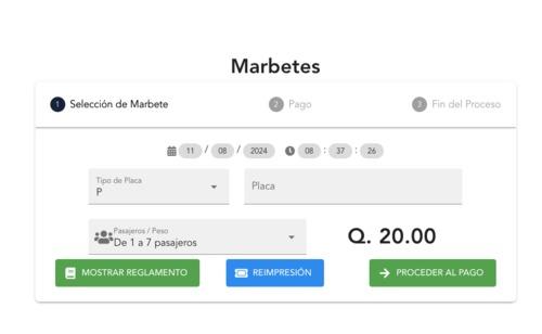 - En el enlace encontrarás la selección de marbete donde debes agregar el tipo y número de placa, y cuántos pasajeros son en total. La cantidad será indispensable para el rango de capacidad de pasajeros que tiene el vehículo.