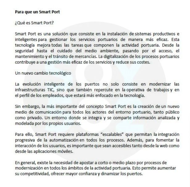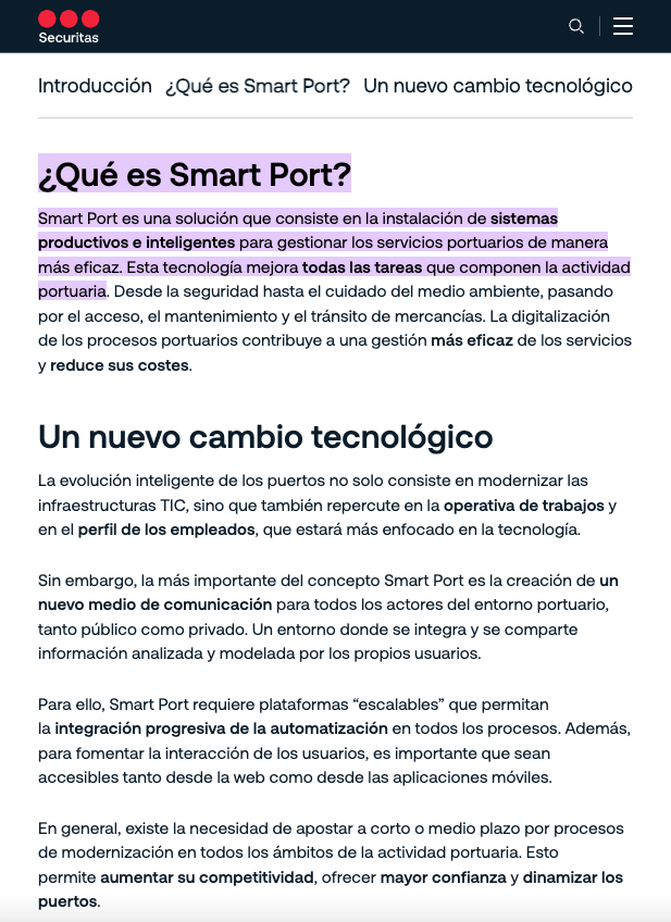 Sin embargo, el documento evidencia que más del 50% de las cuatro páginas entregadas, son un "copy paste" del sitio español de seguridad portuaria Securitas.