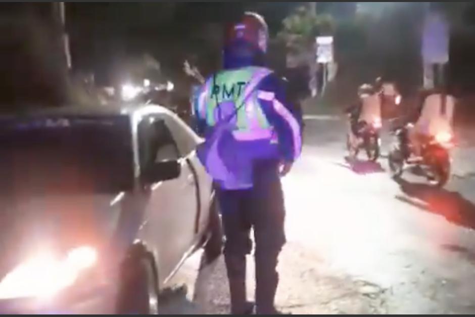 Las imágenes muestran que el hombre fue detenido cuando escandalizaba en un sector del municipio de Villa Nueva, según informaron las autoridades de tránsito de la localidad.