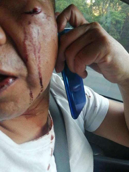 En otro video se observa que el padre de la pasajera resultó herido en el rostro y que su ropa tiene manchas de sangre por la pelea.