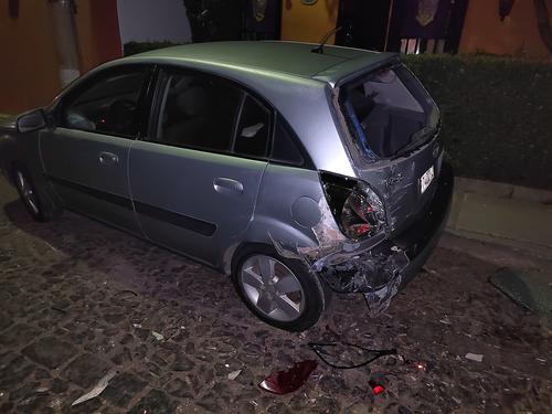 La madrugada de este sábado 15 de abril, una persona que conducía un picop blanco perdió el control de su vehículo y chocó contra un hatchback que se encontraba estacionado en una calle de Antigua Guatemala.