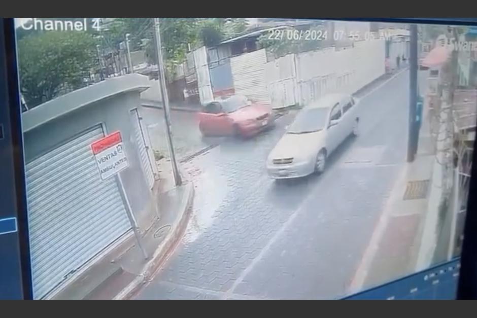 Una cámara de seguridad captó el momento en que un vehículo descontrolado cruza una intersección y estuvo a punto de chocar con otro.