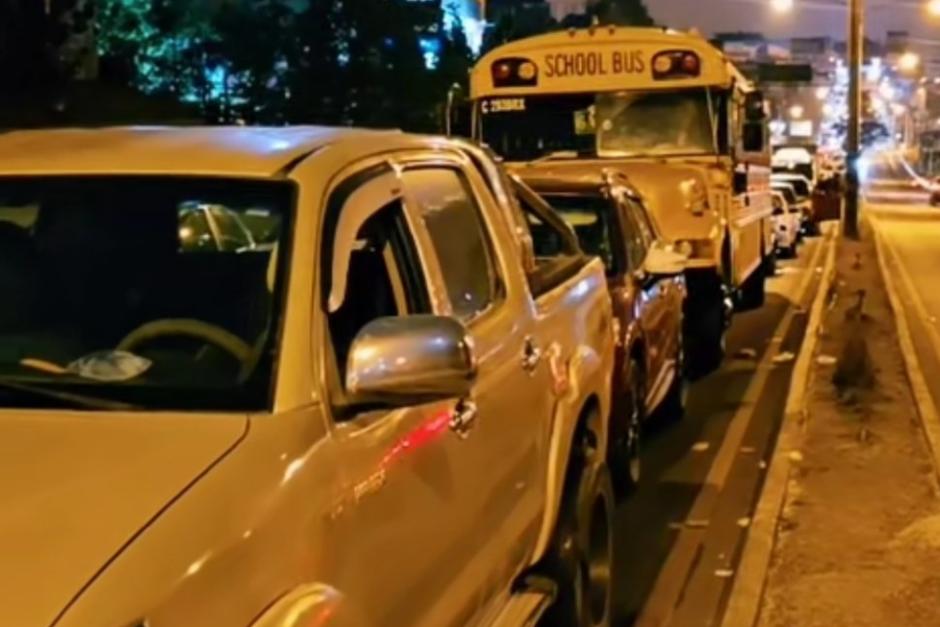 En un video publicado por el usuario Salvador Carrillo, se observa que a las 23:30 horas, ni motos ni carros podían avanzar en el Anillo Periférico, zona 7, frente a la colonia La Bethania.