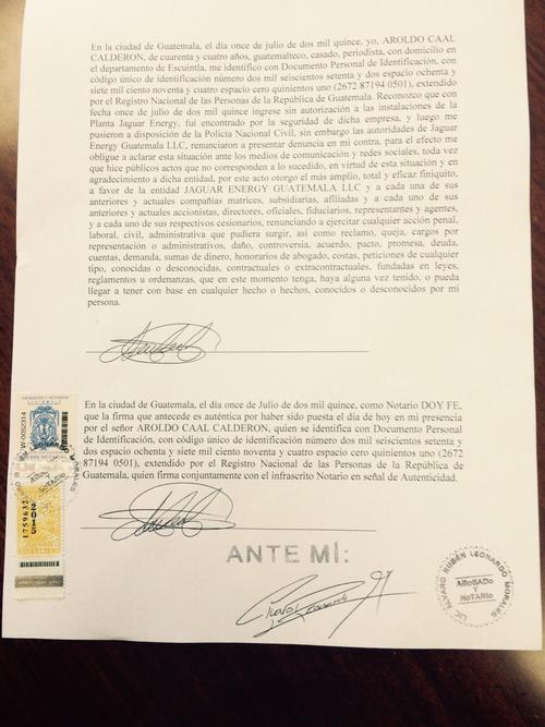 Ante la situación, llegaron elementos de la Policía Nacional Civil por solicitud de Jaguar Energy. “Nos dijeron que no querían problemas, por lo que se firmó un acta para dejar en claro lo que había sucedido”, agregó Caal Calderón.