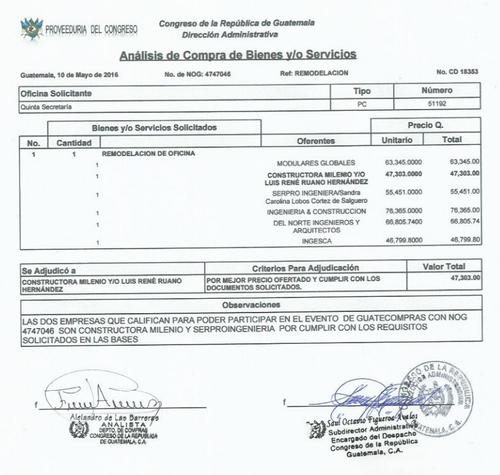 El Presidente del Congreso, Mario Taracena, dijo desconocer acerca de la contratación de la empresa que hará la remodelación, pero enfatiza en que los trabajadores del departamento de mantenimiento del Organismo Legislativo "son malos" y "no cumplen con sus funciones", por lo que espera poder depurarlos.