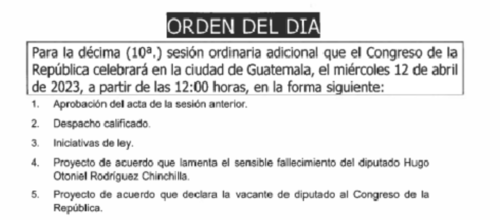 Posteriormente, conocerán y deberán aprobar un acuerdo para declarar vacante la curul y así convocar a quien asumirá su lugar, tal como lo dicta la Ley Orgánica del Congreso de la República.