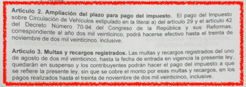 Una propuesta que se impulsa en el Congreso suspendería las multas que se impongan por no pagar el impuesto de circulación a partir del 1 de agosto.