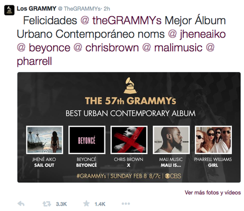 La Academia de la Grabación en EE.UU. anunciará durante todo el viernes a los nominados al Grammy 2015, los premios serán entregados el 8 de febrero de 2015 en el Staples Center de Los Ángeles.