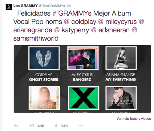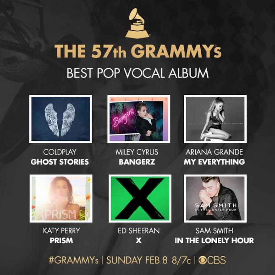 Los nominados al Grammy 2015 están siendo revelados este viernes, entre los primeros nominados se encuentra la polémica Miley Cyrus quien compite con Katty Perry y Ariana Grande por Mejor Álbum Pop Vocal.