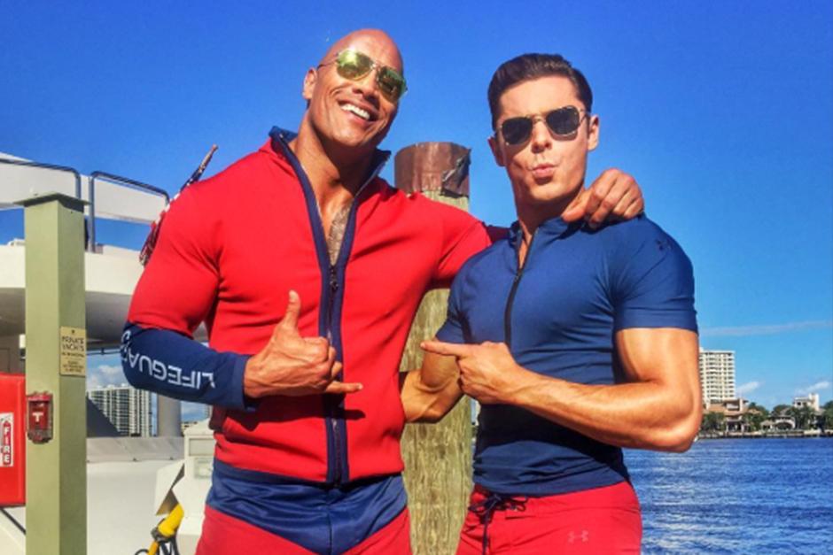 Los actores Dwyane “la roca” Johnson, y Zac Efron fueron los encargados de publicar la foto donde se puede ver a Kelly Rohrbach, Alexandria Daddario, John Bass y Deb Kawi vistiendo los característicos trajes de baño rojos.