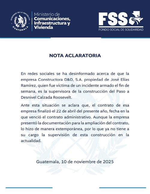 Tras el asesinato de Elías Ramírez, excandidato a alcalde de El Tejar y dueño de la Constructora D&D, S.A., surgieron rumores sobre su participación en la supervisión del paso a desnivel de la Roosevelt.