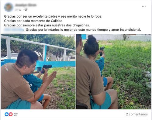 Las imágenes que fueron compartidas por la madre de la menor, resaltan que se trata del progenitor de la niña, quien le muestra cómo utilizar el arma de fuego.