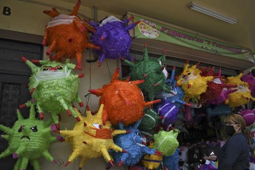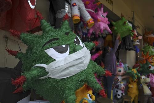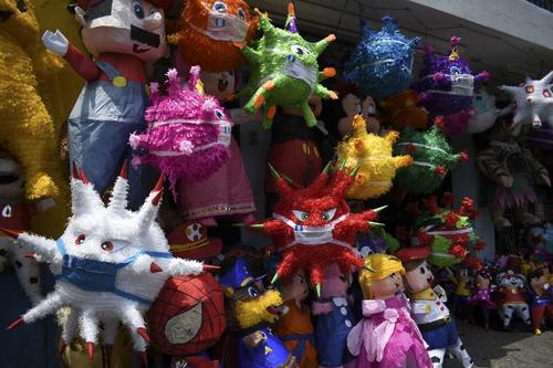 En una sesión de fotos compartida por la Agencia France Presse (AFP) se observa que los vendedores se la han ingeniado para crear coloridas y vistosas piñatas, algunas de ellas incluso, usan mascarillas.