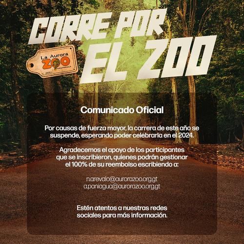 Durante la tarde del jueves 26 de octubre, el Zoológico La Aurora dio a conocer que la 14 edición de "Corre por el Zoo", ha sido suspendida.