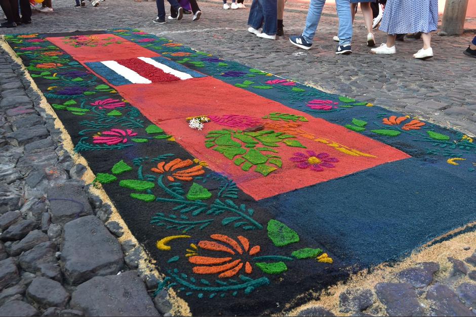 Las alfombras de aserrín son una tradición que se ha expandido por generaciones en todo el país, y consiste en representar figuras folclóricas y religiosas durante estos días.