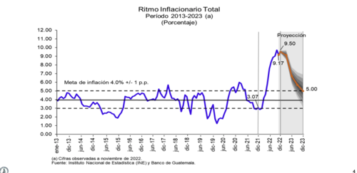 Aunque el crecimiento fue positivo, los precios de la canasta básica y otros servicios se han visto afectados por la inflación, la cual, según el Banguat se situó en un 9.17%, empujado por factores de origen externo, pero prevén que para el 2023 "retorne a la meta determinada por la Junta Monetaria".