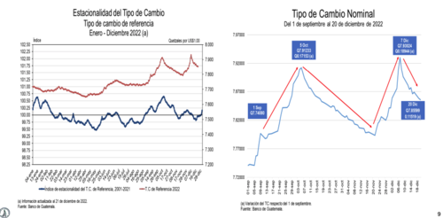 Al mismo tiempo, las autoridades monetarias informaron que el tipo de cambio se ha vuelto a apreciar en las últimas semanas, luego de pasar por un período de depreciación, por lo que se espera un cierre de Q7.86 frente a 1 dólar.