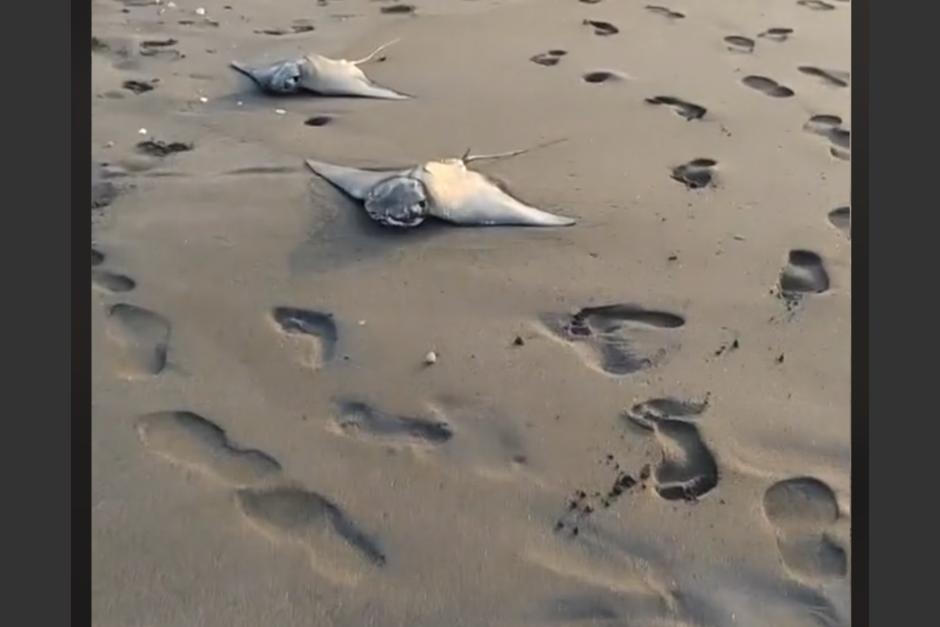 En la grabación se observó a varias mantarrayas que fueron expulsadas hasta la orilla del mar, las mismas que ya estaban muertas.