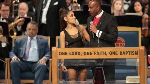 Franklin funeral bishop issues apology for how he touched @ArianaGrande on stage.