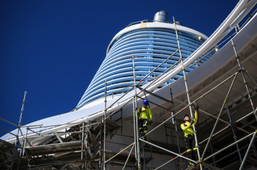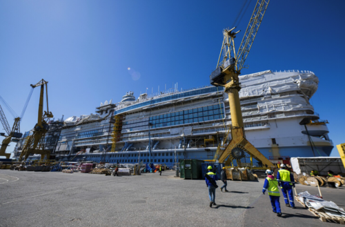Un astillero finlandés está dando los últimos retoques al "Icon of the Seas" (Icono de los Mares), el crucero más grande del mundo, antes de su primer viaje programado para enero de 2024.