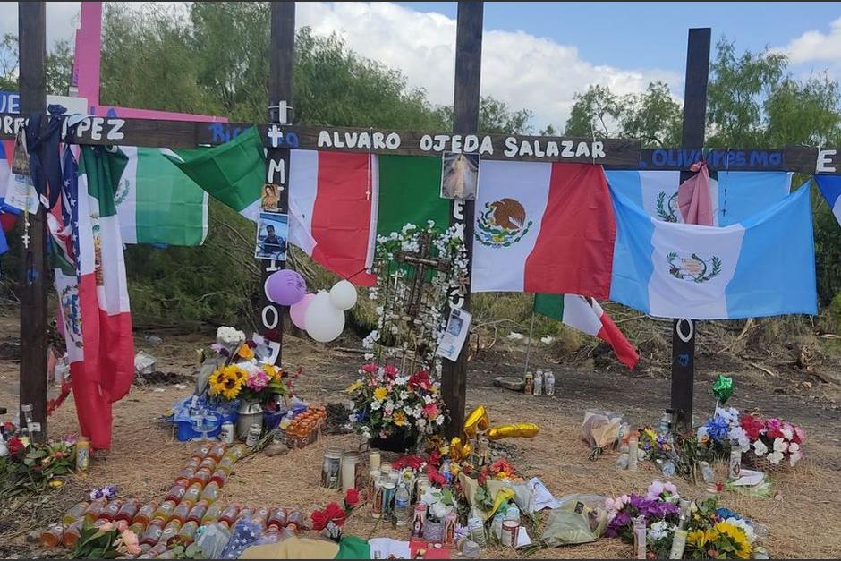 México, El Salvador y Guatemala son las banderas que resaltan en un altar que se creó en el área donde fallecieron 53 migrantes cuando buscaban el sueño americano.