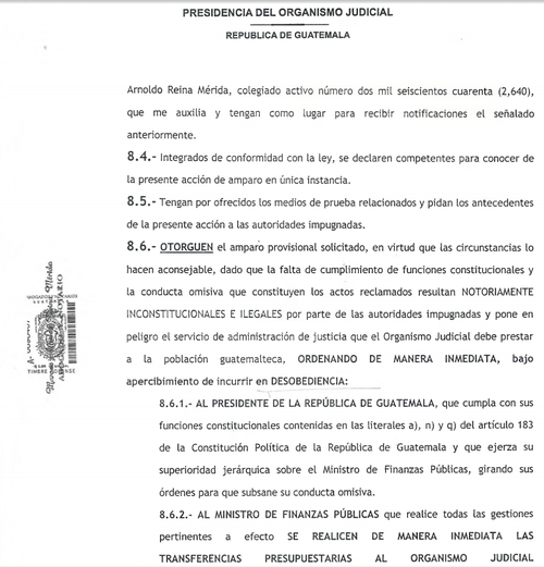 El gerente del OJ, Hugo Guzmán, informó que se presentó en la Corte de Constitucionalidad (CC) un recurso de amparo pidiendo que se ordene al Presidente y al Ministro realizar las transferencias presupuestarias.