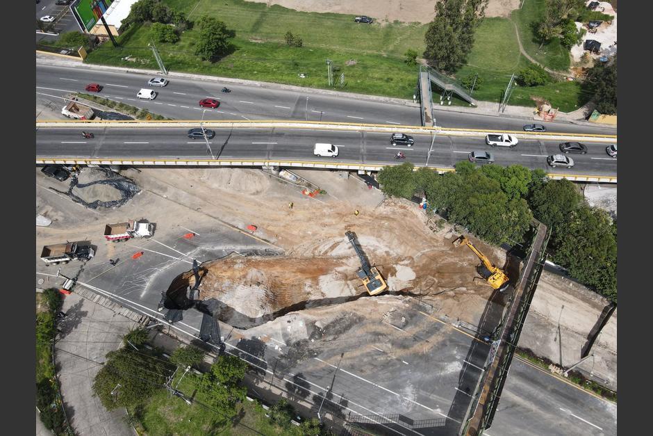 Actualmente el hundimiento es más grande, debido a los trabajos de excavación que se realizaron en el lugar para la construcción de un colector paralelo y se prevé que se instalarán dos puentes para rehabilitar el paso.