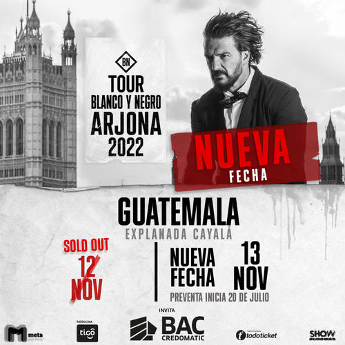 Luego que Ricardo Arjona anunciara la segunda fecha de su concierto en Guatemala, los seguidores se preguntan cuándo iniciará la preventa de boletos.