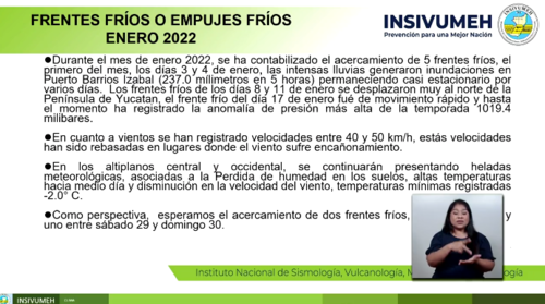 También los días 8 y 11 de enero y el del 17 de enero que fue de movimiento rápido y hasta el momento ha registrado la anomalía de presión más alta de la temporada, confirmó el Insivumeh.